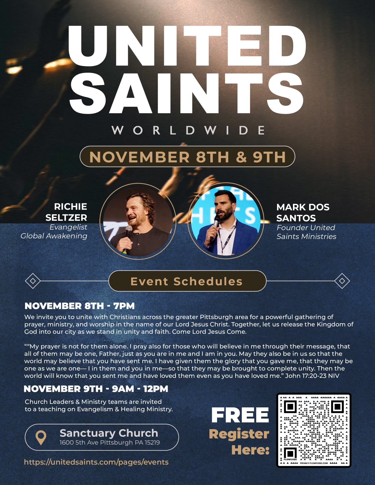 November 6-9 | United Saints 1 Year Anniversary Conference, Pittsburgh, Pennsylvania, USA